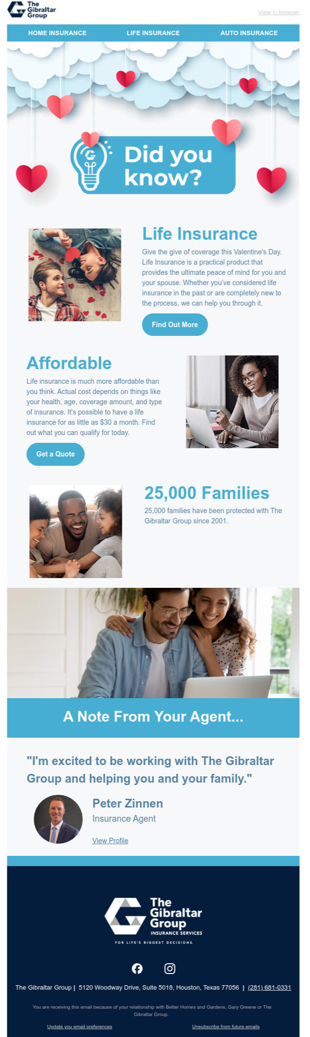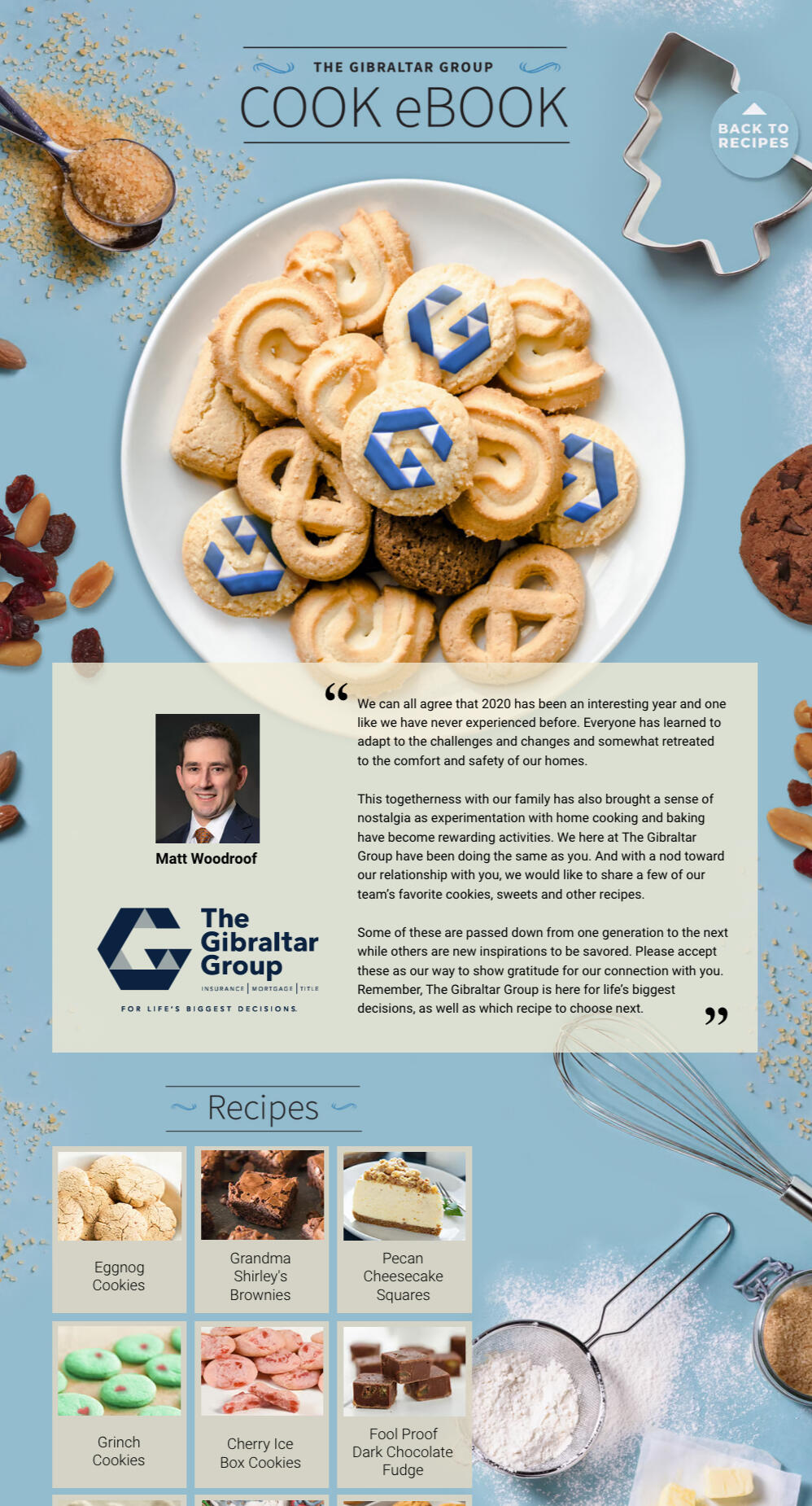 Below are Christmas B2C experience created for The Gibraltar Group Insurance Company. What started out as a fun way to engage insurance office reps with their customers during a pandemic year, has evolved into more elaborate holiday sites each year. Click on each image to view the projects in full. All sites are in archival mode and no longer published directly on the clients site.