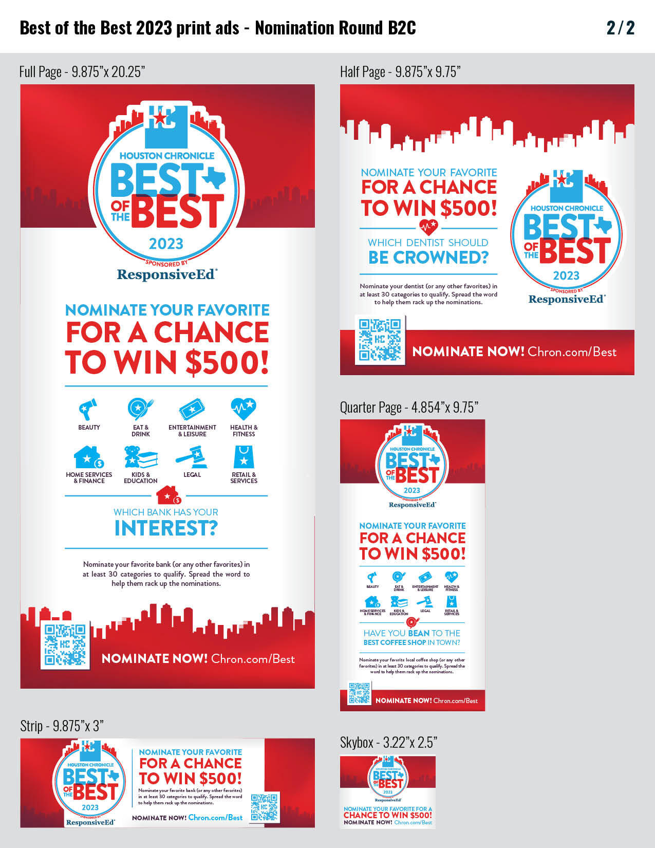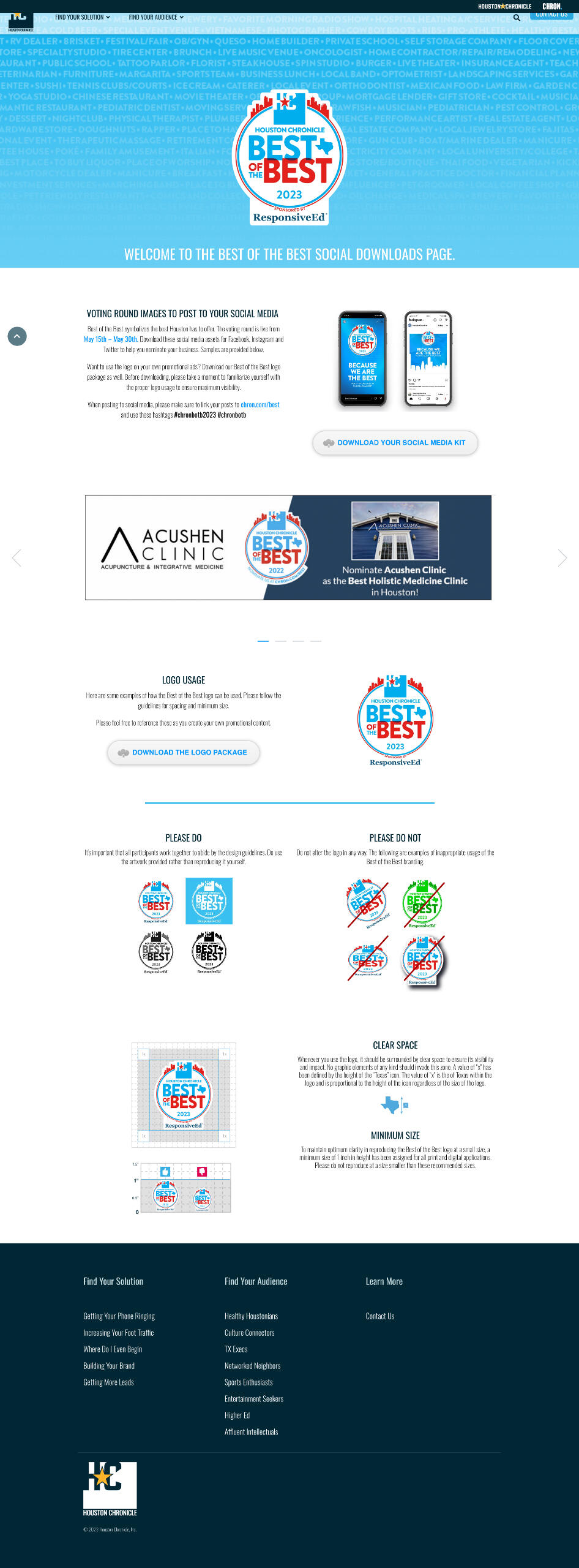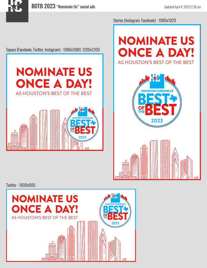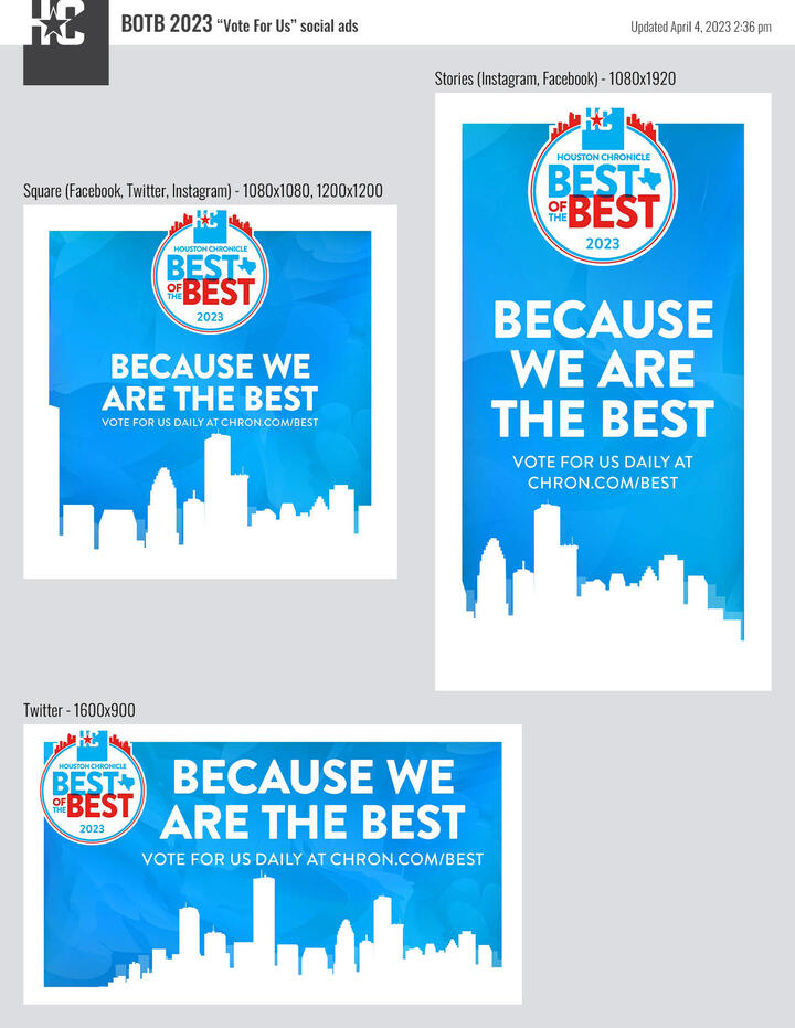 Best of the Best is a B2B event where Houstonians vote for their favorite business to find out who is the best business in Houston. With over 150 categories to vote in and bragging rights up for grabs, businesses from all over the Houston area fight for their title. 2023 was the 4th annual Best of the Best, with our largest turnout ever. There are many parts to this project from sales deck pitches to the final website design. Here are some core elements of this project, including the final winners site, that I've worked on as part of the team.