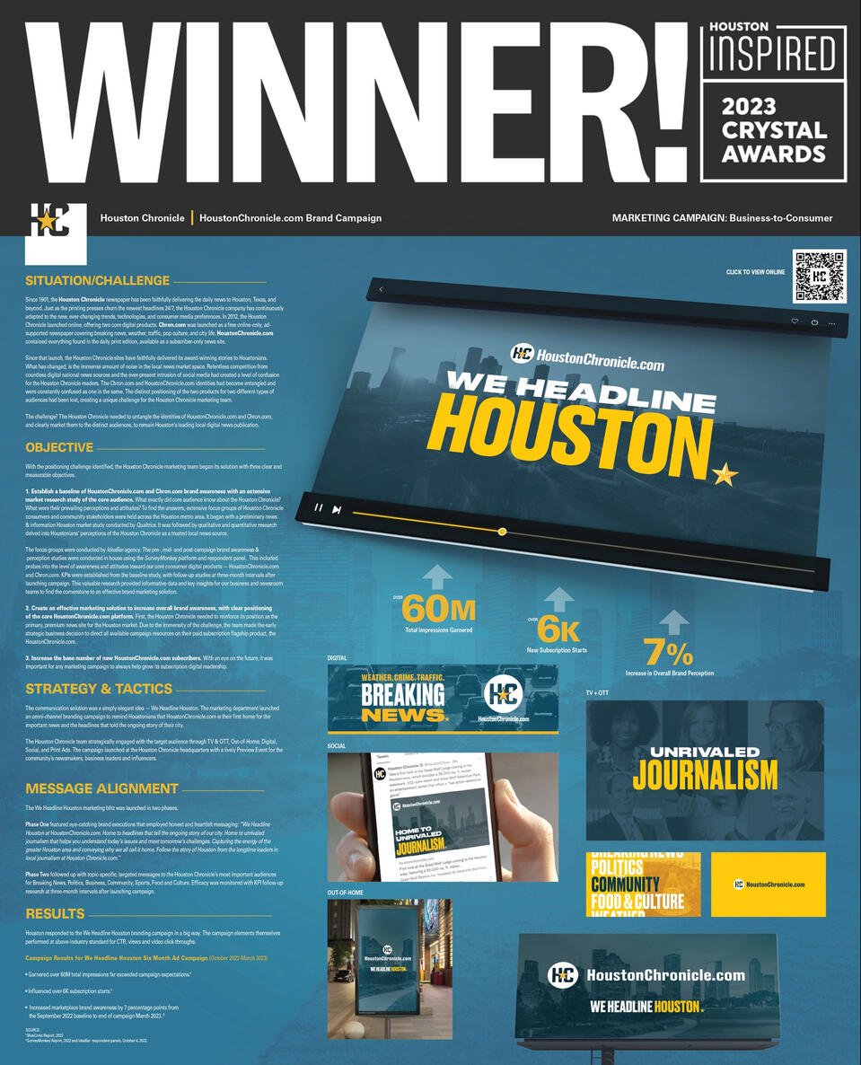 May of 2023 our team entered the Houston AMA Crystal awards. Out of the 5 categories we entered we took home 3 wins.